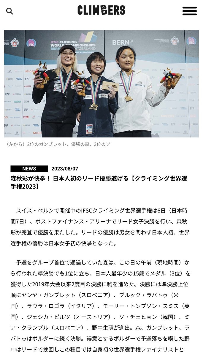 ちなみに今回低身長排除を食らった森選手は、2023年のクライミング世界チャンピオンで、ヤンヤ・ガンブレット(パリ五輪金メダル)も破るほどのリード能力を持っています