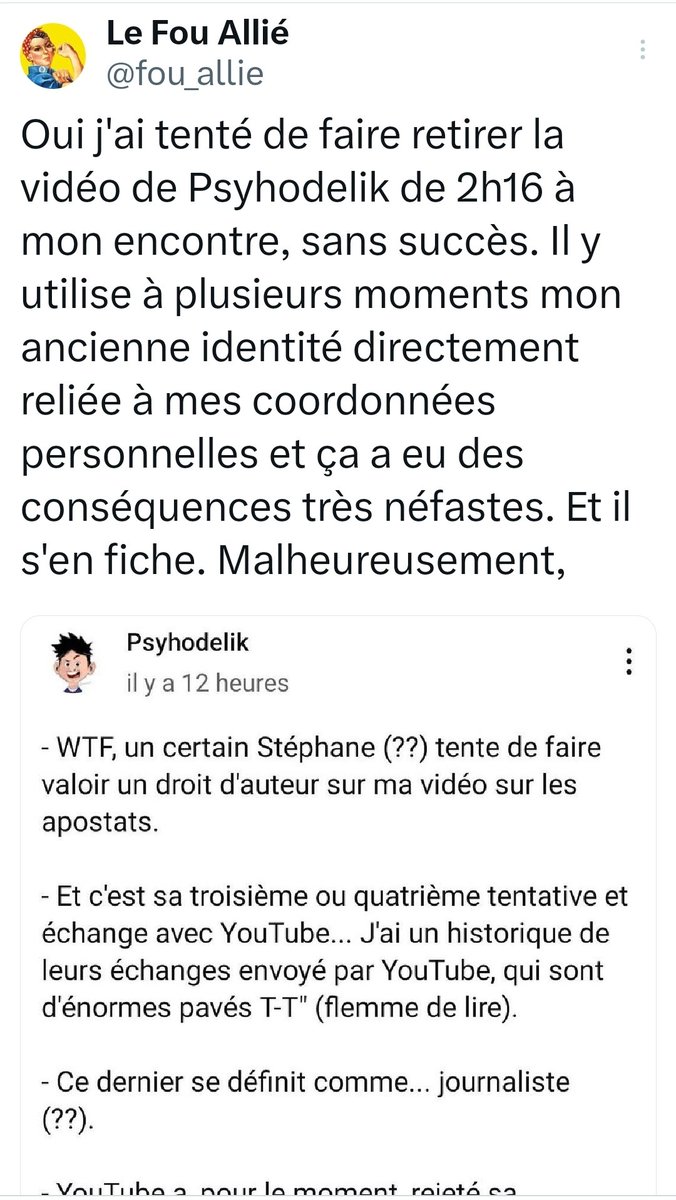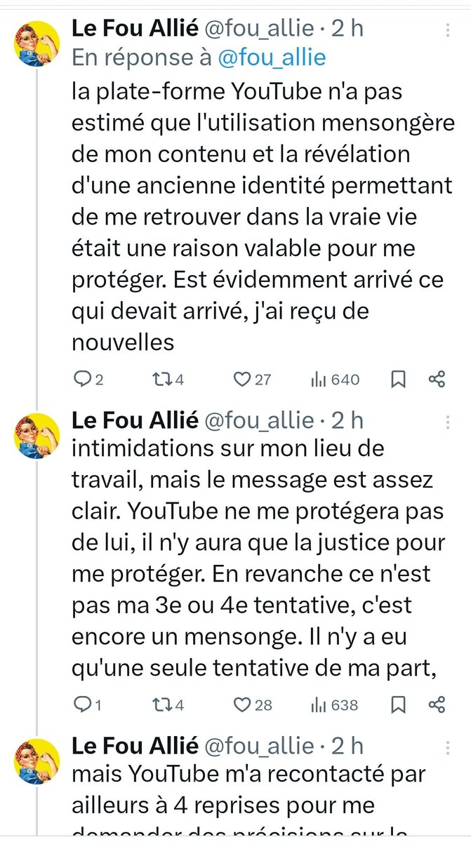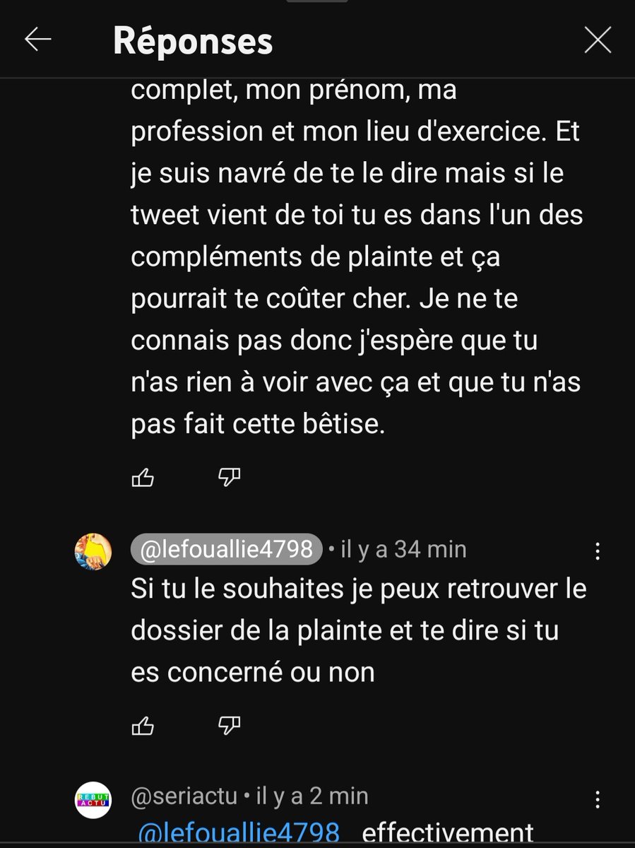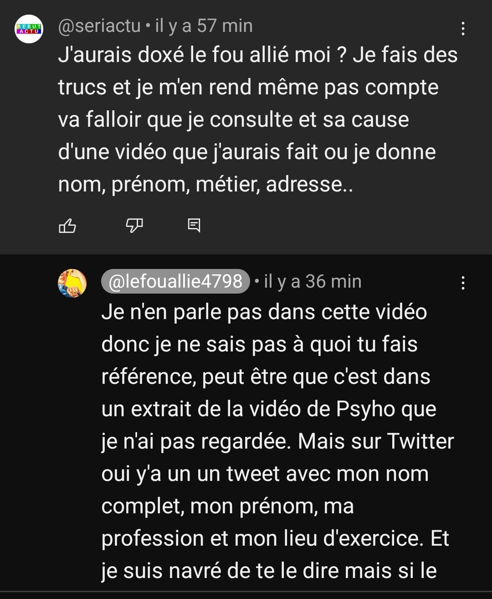 Hier tu as été doxxé plusieurs fois par des personnes que tu l'as pas bloquées et aussi en commentaires de la vidéos, commentaires auxquels tu as pas mal répondu