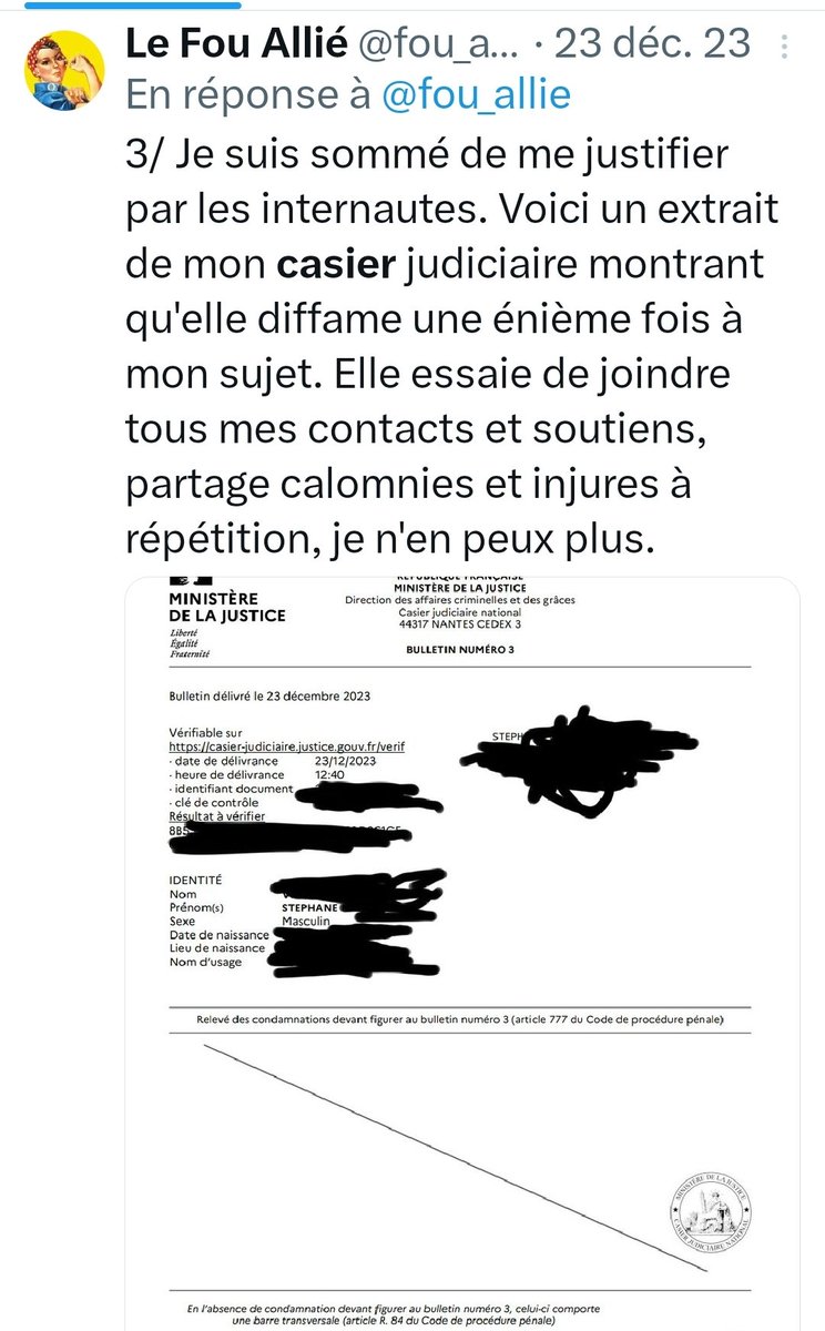Il était au courant de qui il est et de ce qu'il a fait contrairement à ce qu'il prétend et c'est pour cela qu'il la choisi contre moi, pour me pousser définitivement à bout, en lui fournissant les mêmes mensonges et calomnies depuis 9 mois, il ne veut pas se salir les mains⬇️