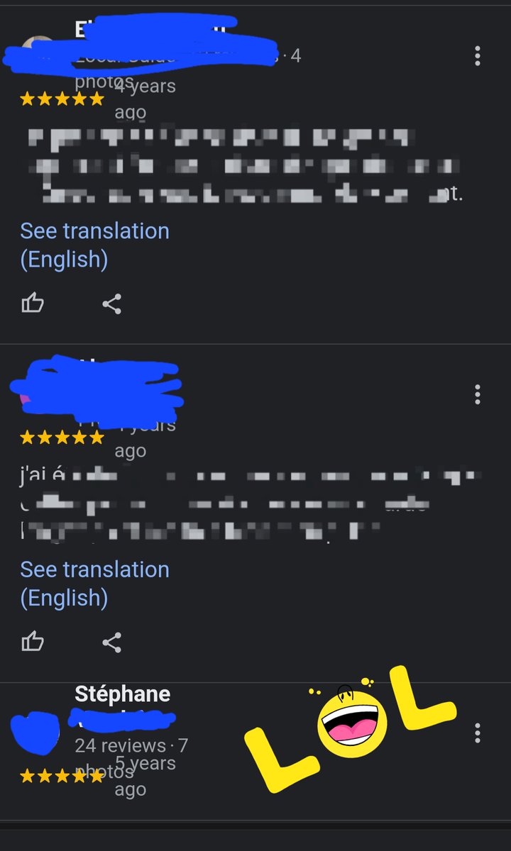 Il s'est même mis 5⭐️ à lui même avec son autre compte exactement du même nom 🤣