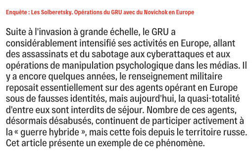Suite à l'invasion à grande échelle, le GRU a considérablement intensifié ses activités en Europe, allant des assassinats et du sabotage aux cyberattaques et aux opérations de manipulation psychologique dans les médias.