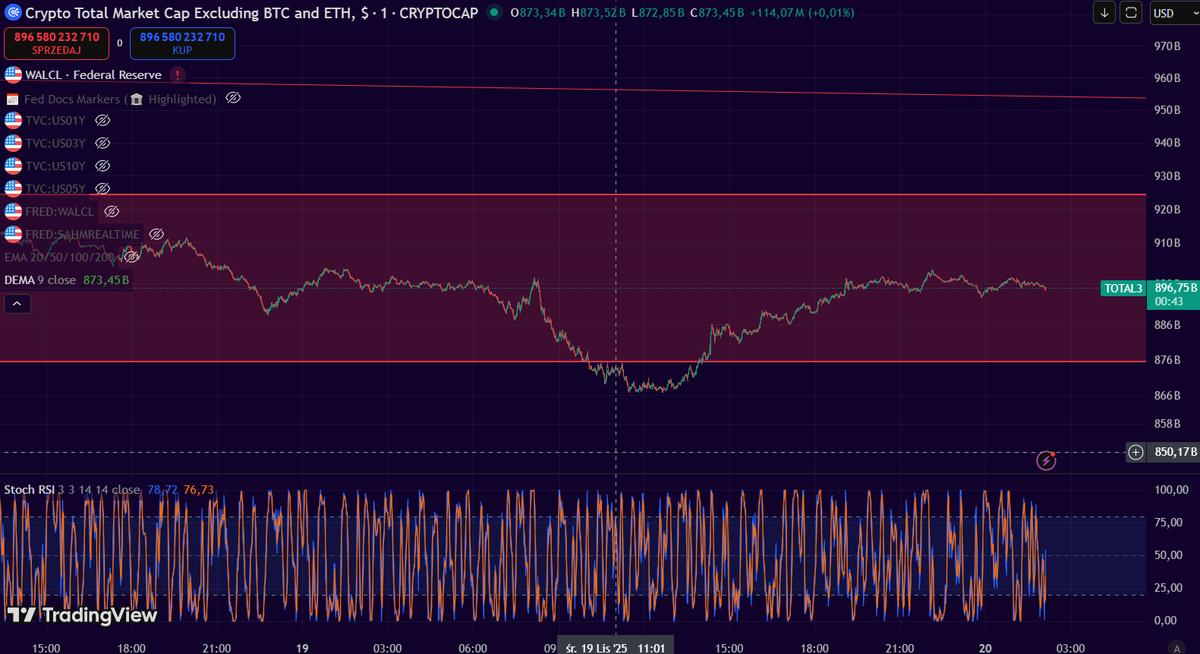Pierwsze zaskakujące przestawienie kalendarza przez BLS miało miejsce 20 listopada i skutecznie schłodziło rajd, który rozwijał się po byczych protokołach FOMC z 19 listopada. Wczoraj altcoiny zaczęły przebijać się przez strefę oporu BLS, jednak zeszłonocna niespodziewana zmiana harmonogramu ponownie wzmocniła ten poziom oporu.