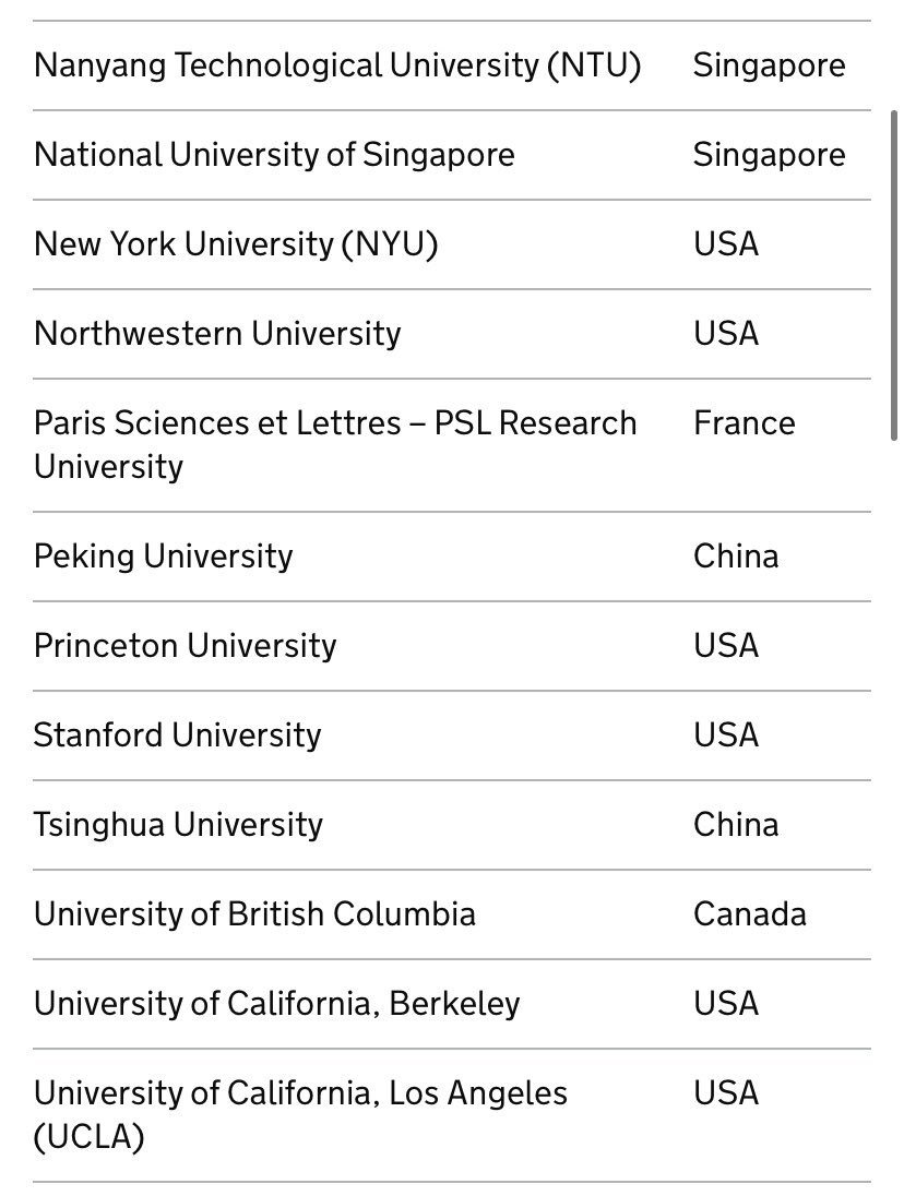 If we really HAD to use rankings for this purpose (they were not designed for this), I'd look at the THE Impact Rankings, which assess social and economic impact, framed around the #SDGs. The world top 20 alone includes Malaysia, Thailand and Indonesia: timeshighereducation.com/impactrankings…
