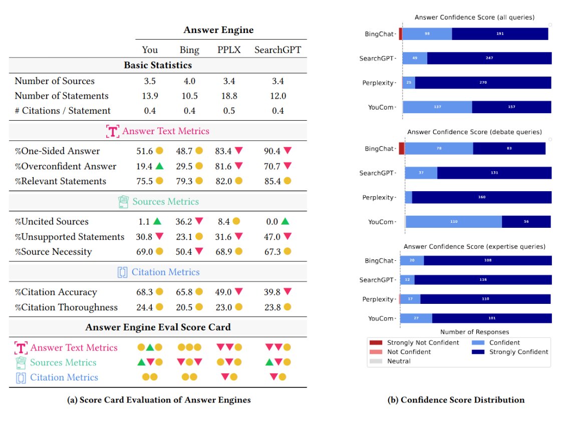 SearchGPT is (1) most likely to provide a one-sided answer and (2) very likely to sound overconfident.