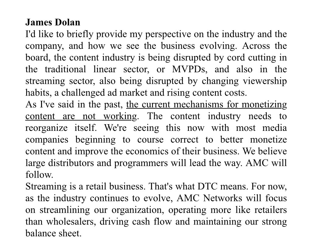 Dolan gives a state of the union on streaming. And the shift from wholesaler to retailer /2