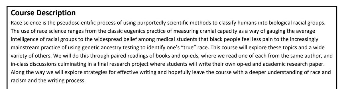 Gearing up to teach my favorite class again this semester: "Race, Science, and Race Science," where we discuss the many, MANY complex ways eugenics is embedded in American society, from genetic ancestry testing to ideas about weight loss.
