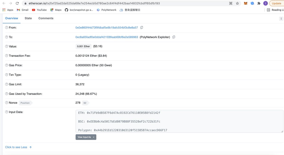 We are sorry to announce that #PolyNetwork was attacked on @BinanceChain@ethereum and @0xPolygon Assets had been transferred to hacker's following addresses: