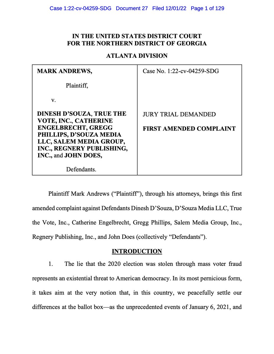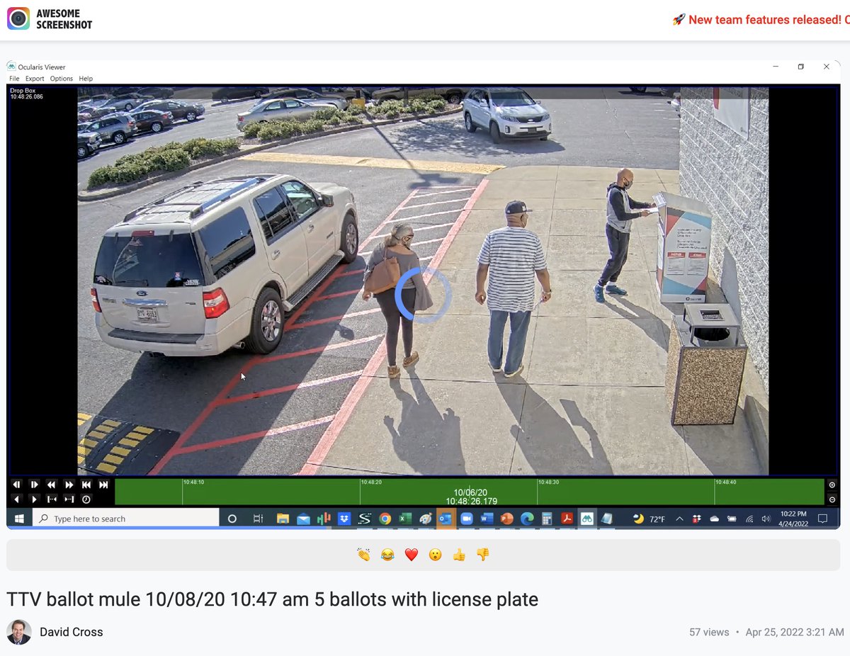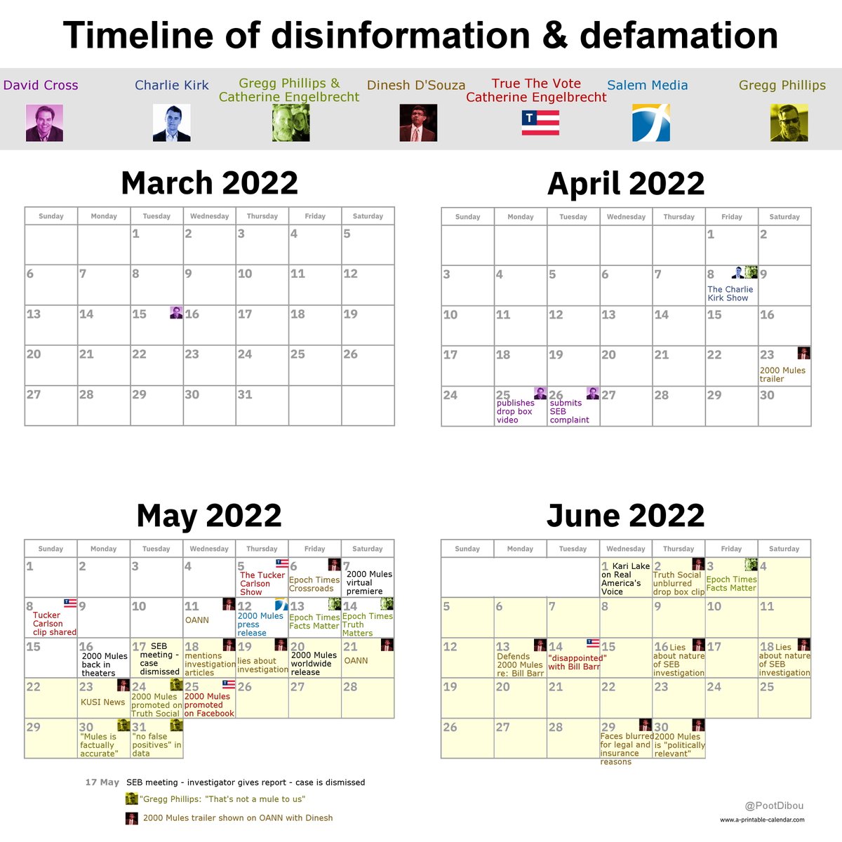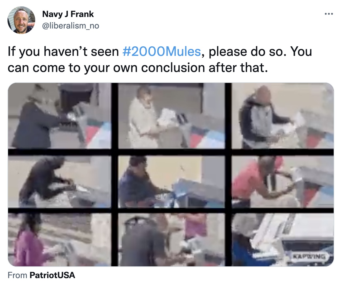 The timeline shows when the drop box video of Mark Andrews was used as an example of illegal behaviour when 2000 Mules was mentioned.
