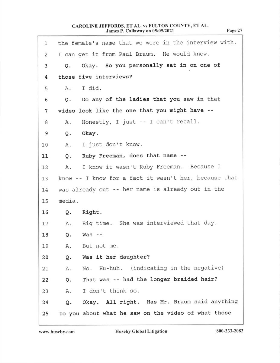 Ruby Freeman was interviewed by the GBI, FBI and the Secretary of State's office the day the Rudy Giuliani disinformation video came out.
