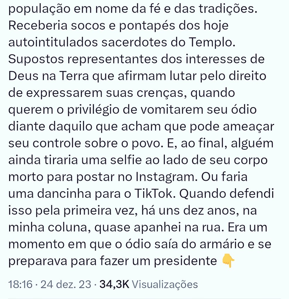 https://twitter.com/ZAMENZA/status/1820461326759493987e as influências africanas e indígenas na sua identidade. O elemento evangélico é bem mais recente, mas nem por isso deixa de ser expressivo. Evangélicos já somam dezenas de milhões de brasileiros, predominantemente pobres, periféricos e pretos. Eles não estão na elite, (+)