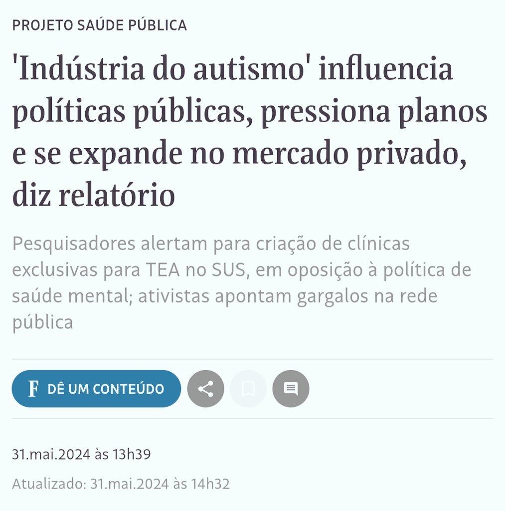 NÃO É FABRICADO. É uma condição genética e neurológica. Na prevalência de 4 em cada 10 pessoas. É uma demanda gigantesca, mas muito negligenciada pelo poder público. Se a gente ainda luta pra ter via de acesso pra cadeirante, imagina adaptação visual e tutor pra TEA? (+)