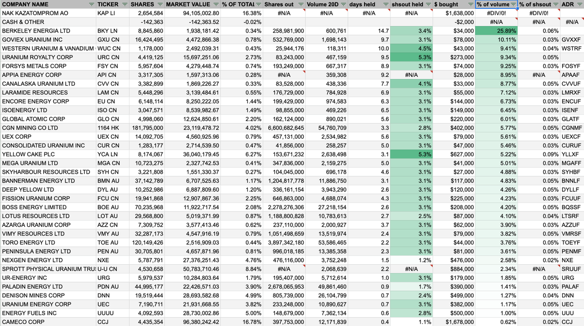 Started analyzing the $URNM holdings. Data as of 09/30. Wanted to look at the potential impact of URNM flows if (when?) that ETF starts getting massive inflows.