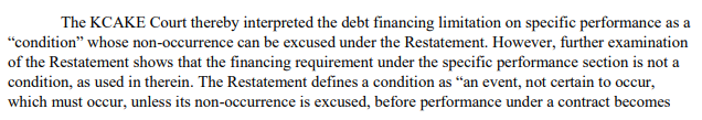 https://twitter.com/ProfRobAnderson/status/1571863003406172172A key point concerns the "prevention" doctrine, which CM used in Decopac to disregard a financing failure engineered by the buyer in order to trigger an escape hatch on SP. Rob argues that prevention applies only to "conditions", not "remedies" (under his reading of the Rtmt 2d).