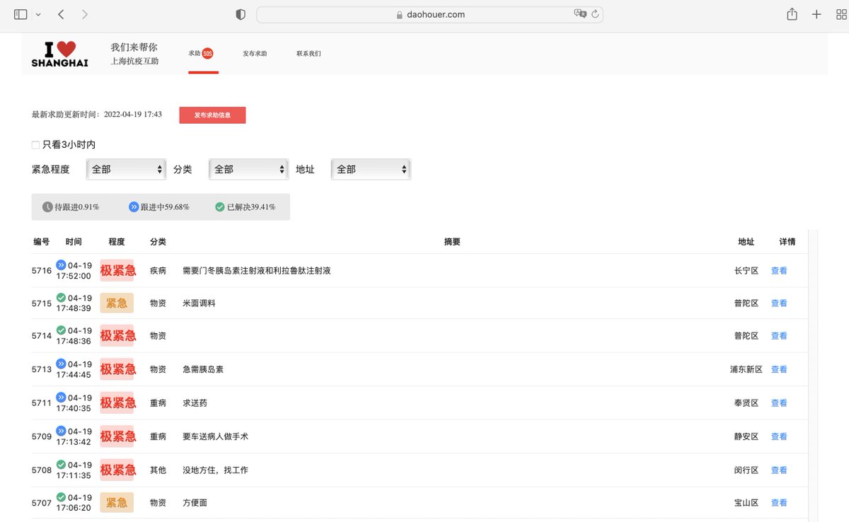 We're 3 weeks into Shanghai's full lockdown (some areas are at least 6 weeks in). As locked days grow, more families face unexpected contingencies. Here is a short list of grassroots online places to find help during this challenging period 🧵: 1- If you need urgent help, try posting on "上海抗疫互助" :daohouer.com