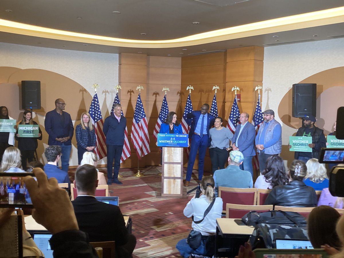 @GovWhitmer @LtGovGilchrist @dananessel @RashidaTlaib @MayorMikeDuggan @midmichigannow @upnorthlive @WSBT Detroit Mayor Mike Duggan spoke first, addressing the news (broken by @DNBethLeBlanc, @CraigDMauger) that GOP Sec. of State candidate Kristina Karamo filed a lawsuit questioning the votes of tens of thousands of Detroit residents. He mispronounces her name.