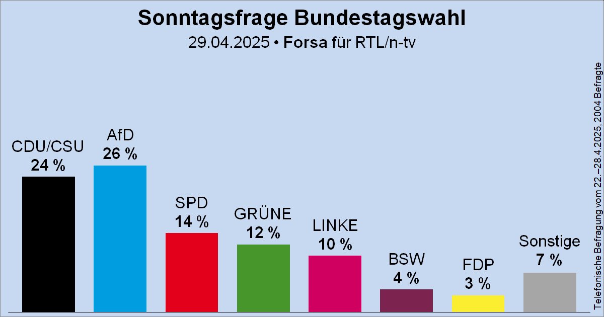 Bij Markus Lanz (ZDF, 1 mei) waarschuwde Mariam Lau, journaliste bij die Zeit, daarom voor de reële mogelijkheid dat de machtsverhouding weldra is omgedraaid, en dat er gespeculeerd zal worden over ‘blau-schwarz’, in plaats van andersom.