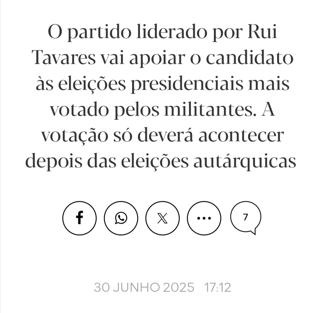 30Jun2025: "Livre vai fazer referendo interno para decidir candidato presidencial e inclui António Filipe. O partido vai apoiar o candidato mais votado pelos militantes." (no Expresso)