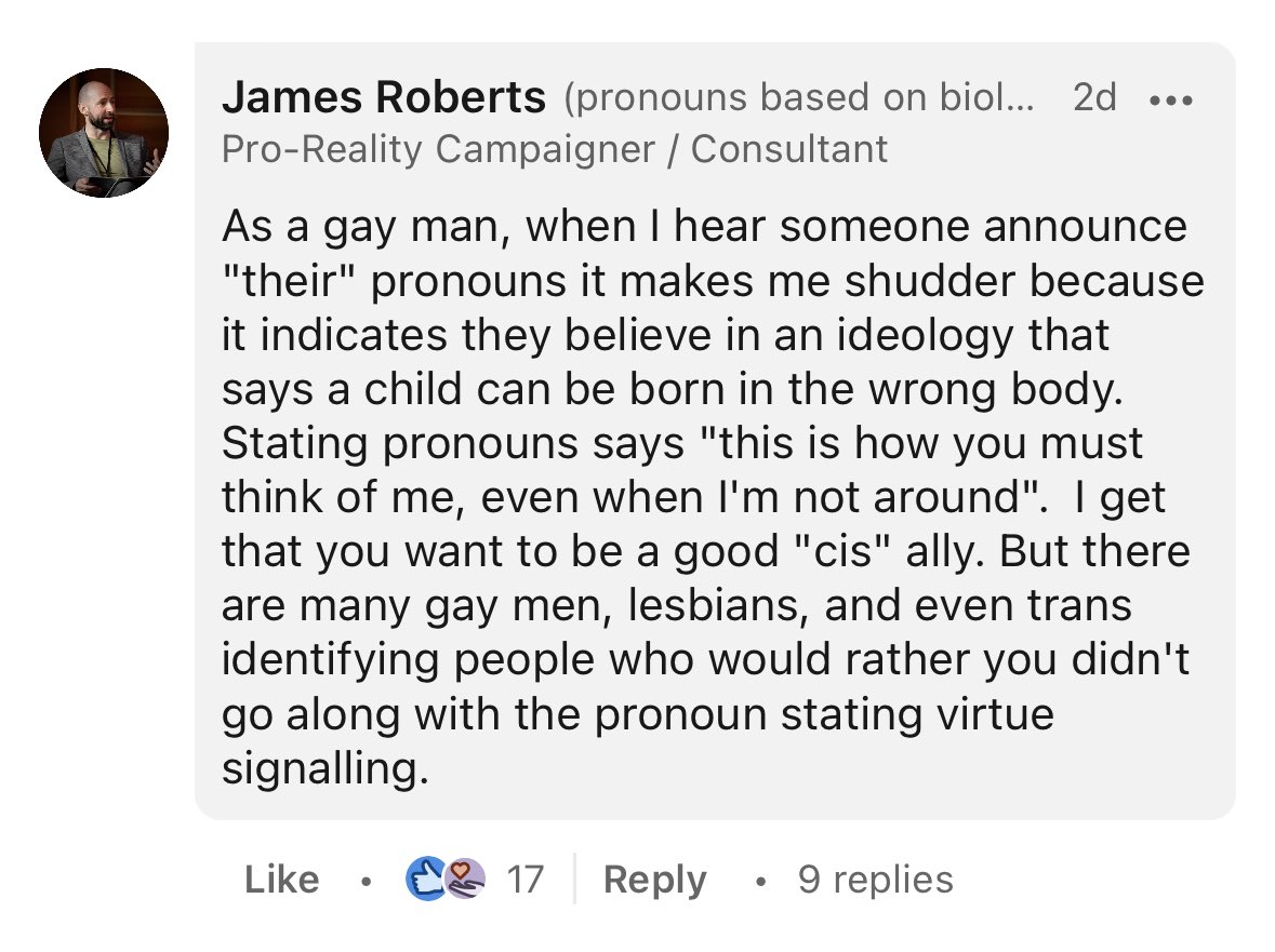 I think it’s safe to say it did not go the way she thought it would 🙃 2/8 “As a gay man, when I hear someone announce "their" pronouns it makes me shudder because it indicates they believe in an ideology that says a child can be born in the wrong body.”
