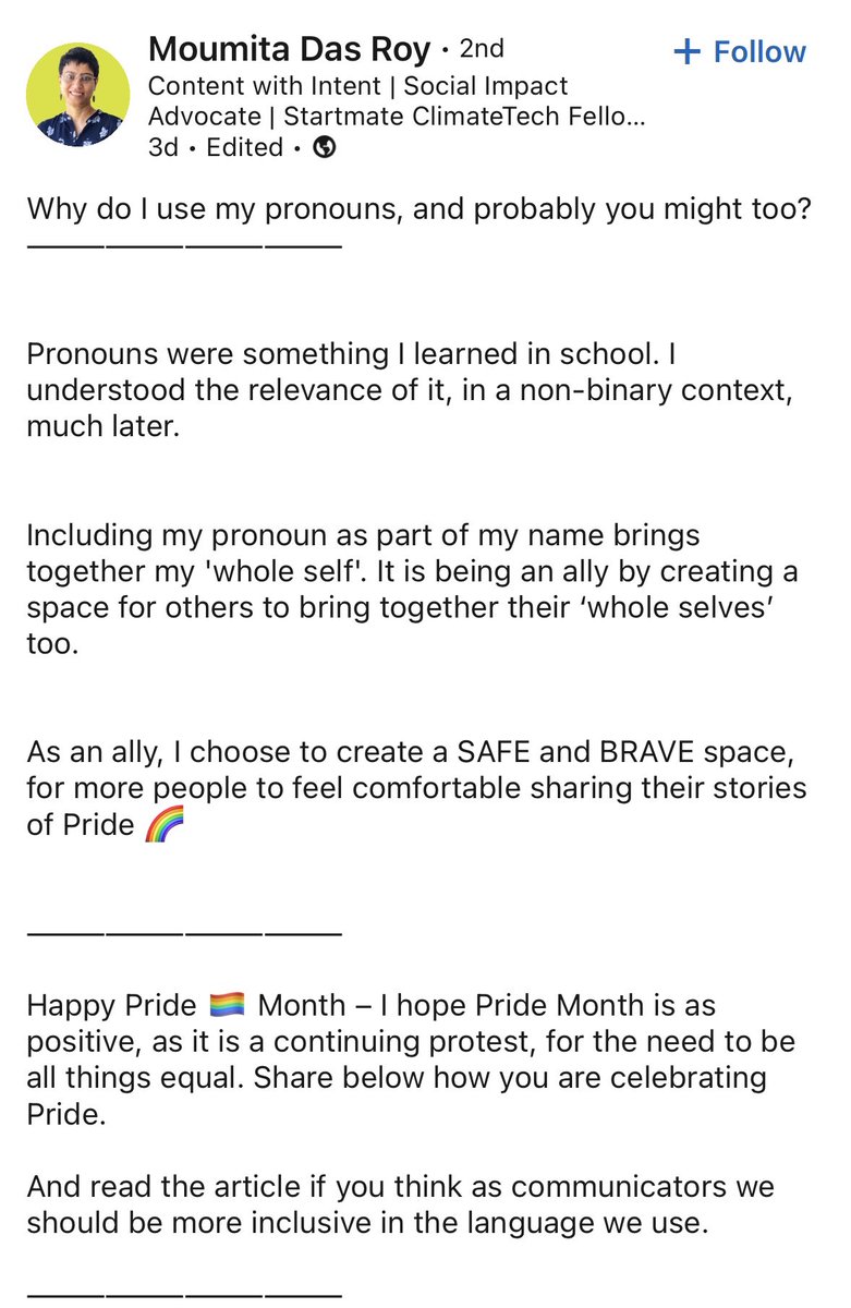 1/8 Someone made a post about the inclusiveness of pronouns for #PrideMonth 🏳️⚧️🏳️🌈 on @LinkedIn.