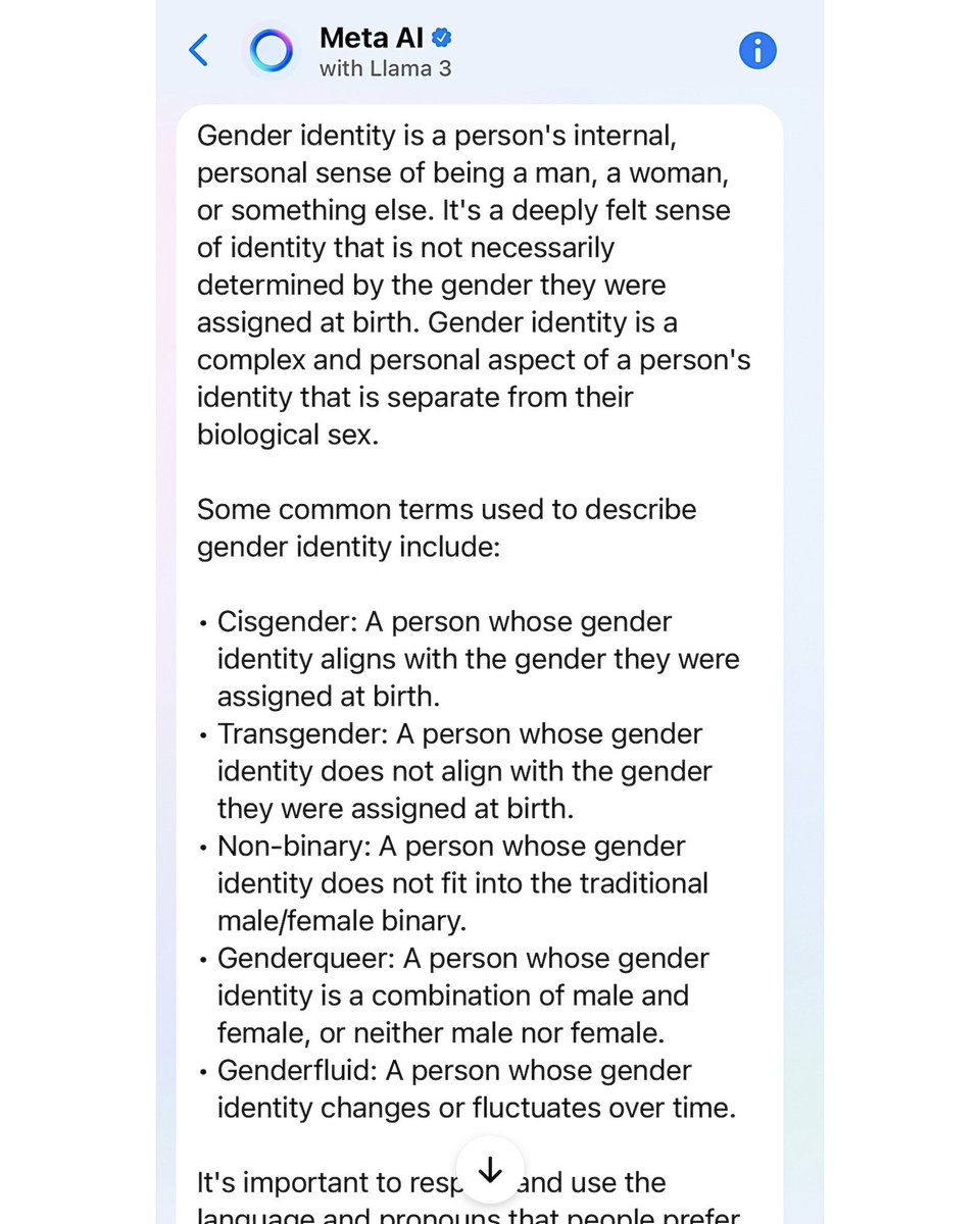 2/13 As a result, Meta AI wanted to teach me about gender identity, which I obliged.