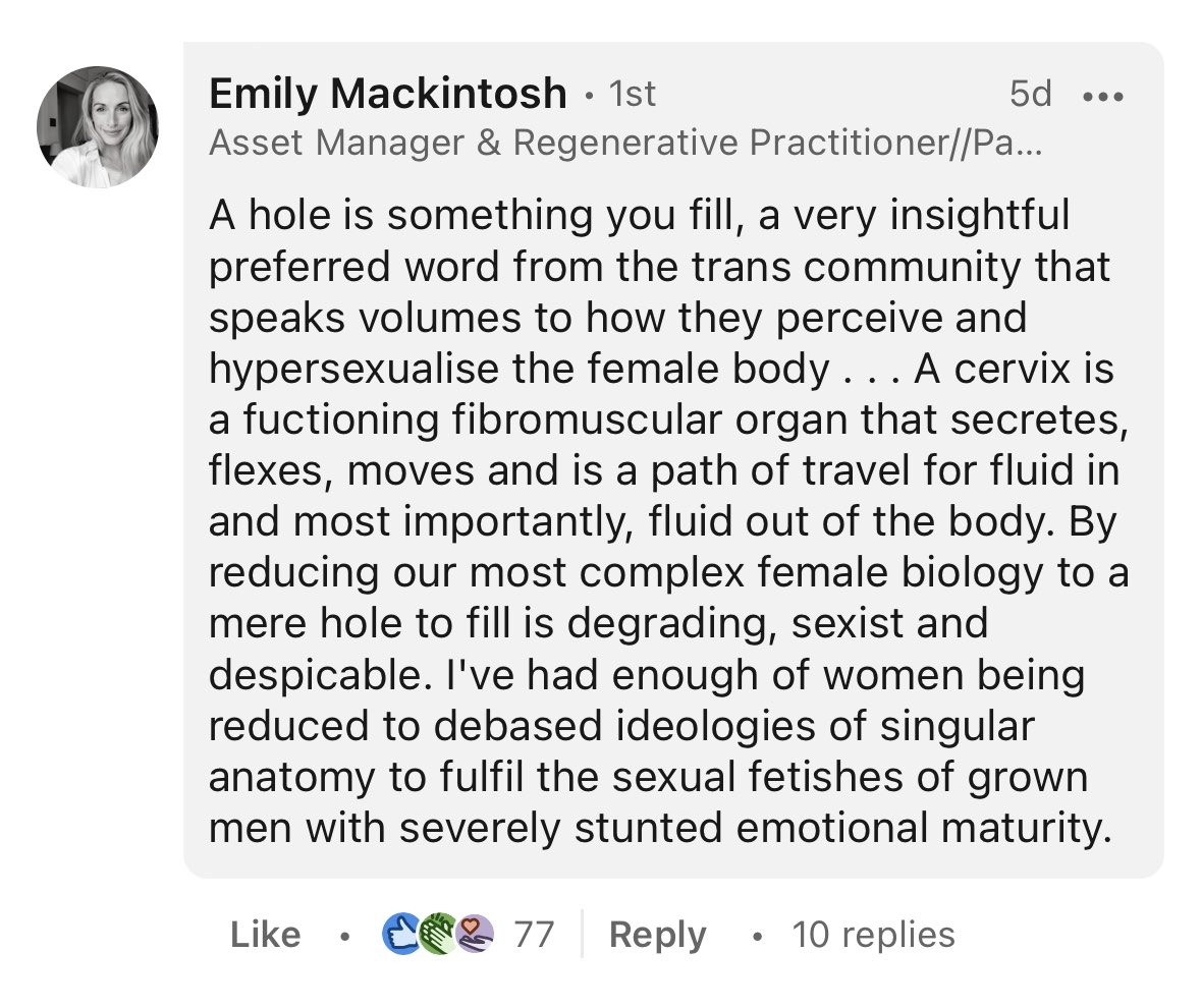 1/ Because you all found my last @LinkedIn post so encouraging, I thought I’d share a selection of the 300+ comments from LinkedIn members responding to the degrading term “front hole”.