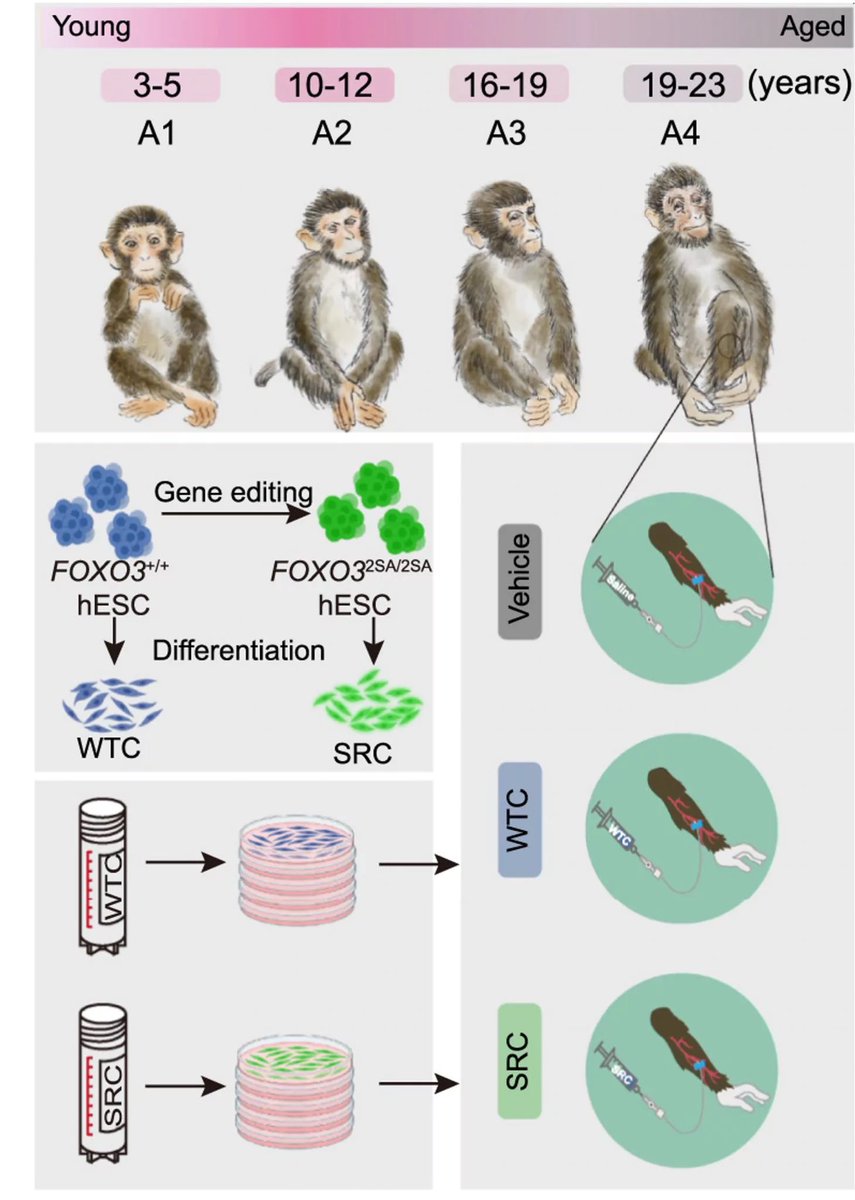 לקחו את הגן הזה, שמגיב למצבי לחץ ומשפר את אריכות החיים באמצעות ויסות ביטוי גנים הקשורים בהתחדשות ותיקון נזק. והכניסו אותו לתאי גזע עובריים וגרמו לביטוי ביתר של החלבון. את התאים עם הגן הזריקו פעמיים בשבוע לקופים זקנים וצעירים. ונתנו להם את הזריקות במשך 44 שבועות. התוצאות מטורפות>