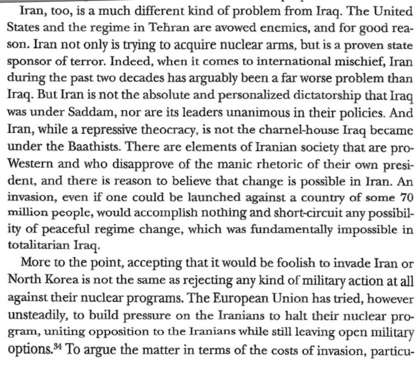 "The United States and the regime in Tehran are avowed enemies, and for good reason. Iran not only is trying to acquire nuclear arms, but is a proven state sponsor of terror."