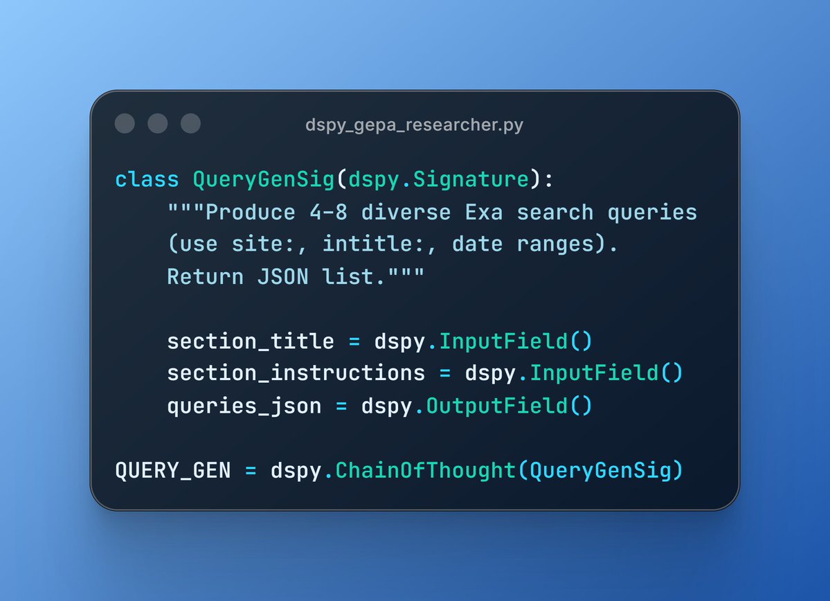 2/ Each DSPy signature becomes a communication interface, and GEPA optimizes: