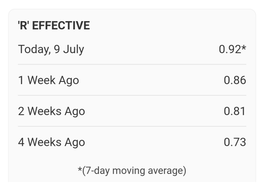 Rt has been on the increase for the past few weeks
