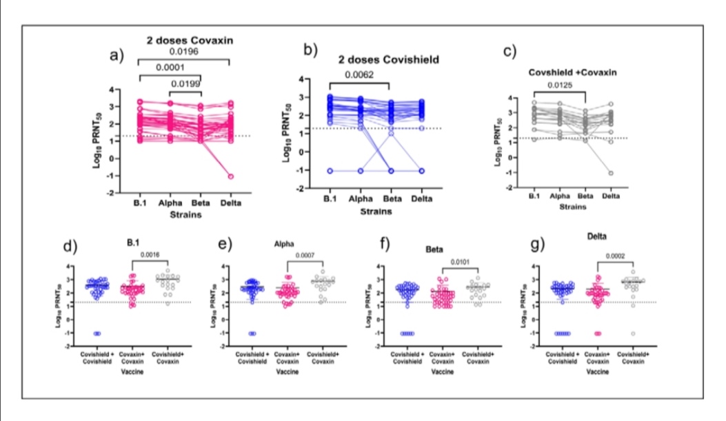 "Immunogenicity profile against Alpha, Beta and Delta variants in heterologous group was superior and IgG antibody and neutralising antibody response of the participants was also significantly higher compared to that in the homologous groups"