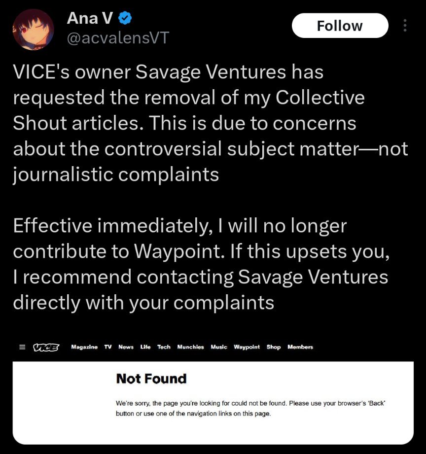Also worth stressing: VICE saw it fit to remove Ana Valens' piece, yet still considers THESE worth keeping up for posterity.