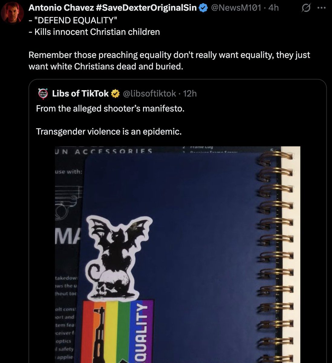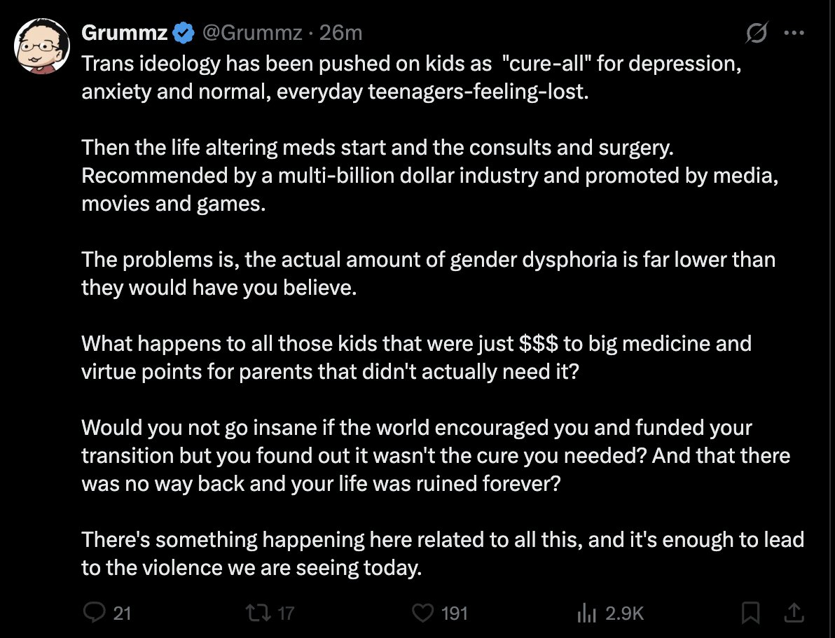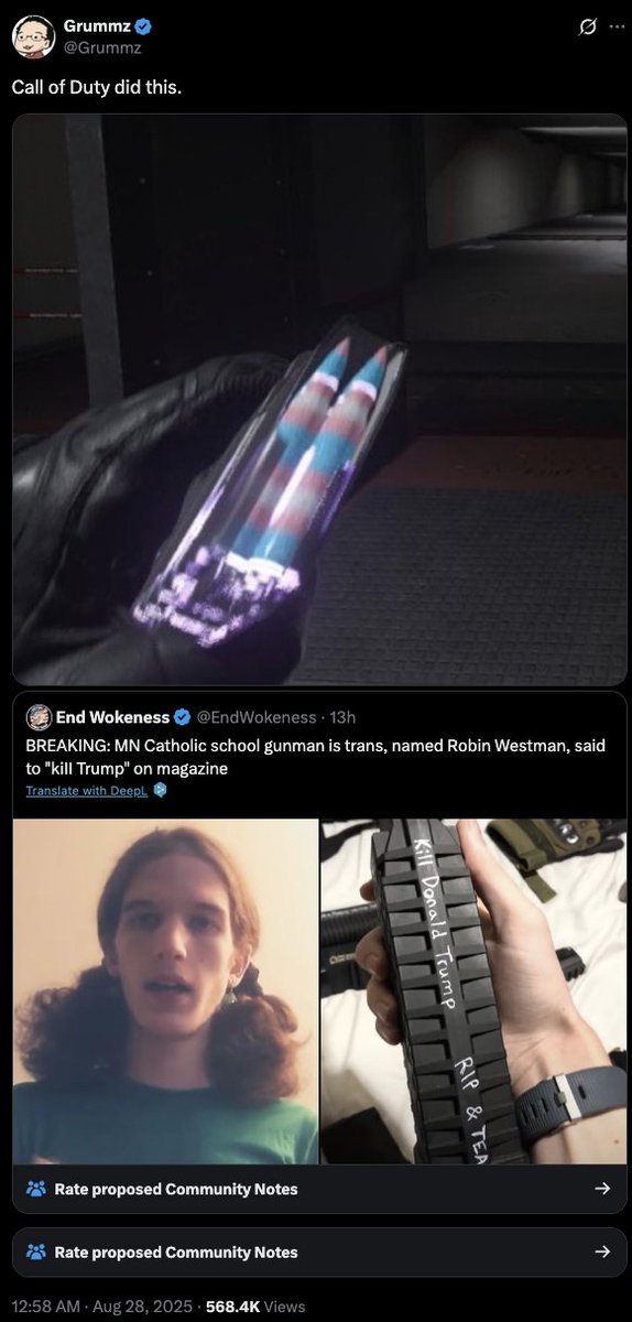 All because LGBT is now "open season" in political and culture war mudslinging and the perp being trans.https://x.com/SophiaNarwitz/status/1960915231028183504