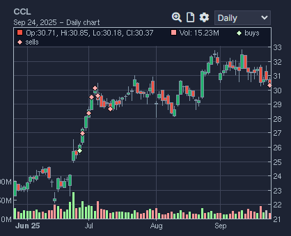 $CCL bought on 6/26 as a High volume close setup(HVC). I did a nice job peeling into strength and staying patient as long as I could. Once $RCL started to weaken and I got a close under the 50sma my patience ran thin. Exited the rest on 9/24. Happy with my patience.