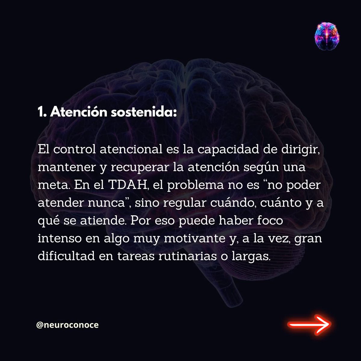 sino una atención irregular: pueden concentrarse mucho en tareas muy estimulantes y perder el foco con rapidez en actividades repetitivas, largas o poco gratificantes. Desde la neurociencia, este proceso depende de redes cerebrales que coordinan selección de estímulos, memoria 👇