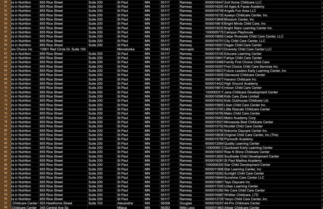 https://twitter.com/lwoodlwoodl/status/2005218273084985808In addition to other funds, it's clear the "Learing Center" was taking funds for meals, despite getting dinged by inspectors for shit food. They are also, shockingly, in continuous trouble for non-supervision, safety hazards, and surprising nobody, failing to maintain attendance and immunization records. Nearly a hundred violations in seven years.