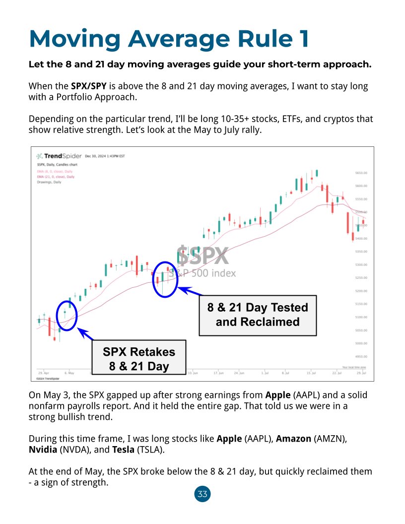 Moving Average Rule #1: When the $SPX $SPY are above the 8 & 21 day moving averages, stay long with a Portfolio Approach.