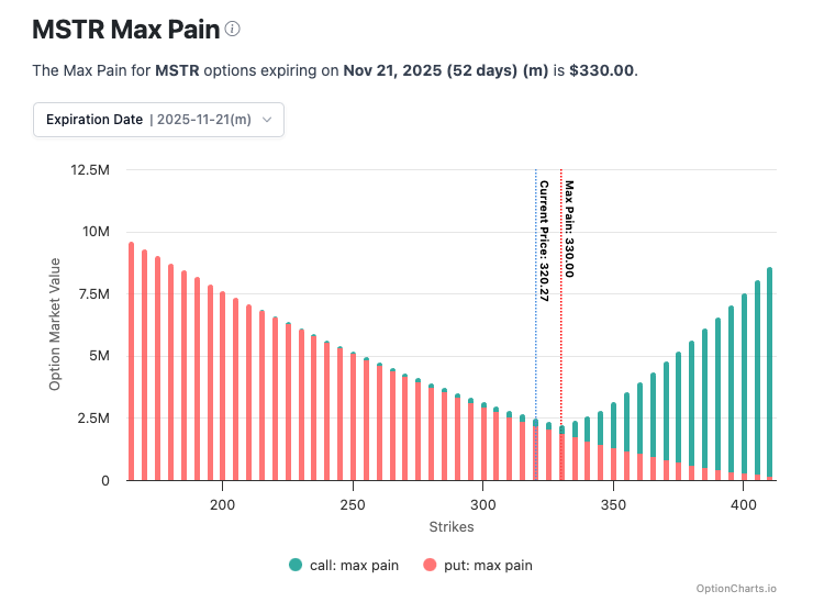 As an example of how hard it will be to sort out the influence on bitcoin, let's look at Max Pain in some options of these equities. (what is max pain? )