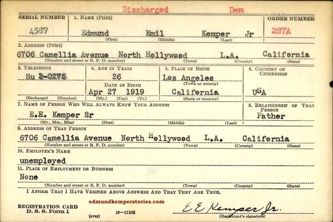 Edmund Emil Kemper the III (born Dec 18, 1948), aka the Co-ed Killer, is a US serial killer serving 8 consecutive life sentences after being convicted of murdering 7 women & 1 girl between May 1972 & April 1973.