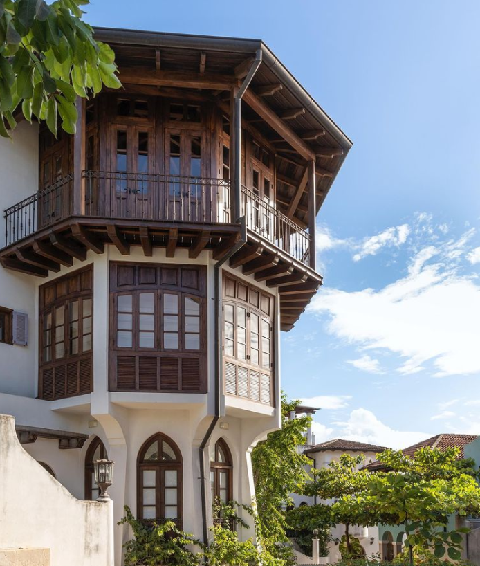You see similar projecting timber balconies in Cartagena, Colombia, for example.