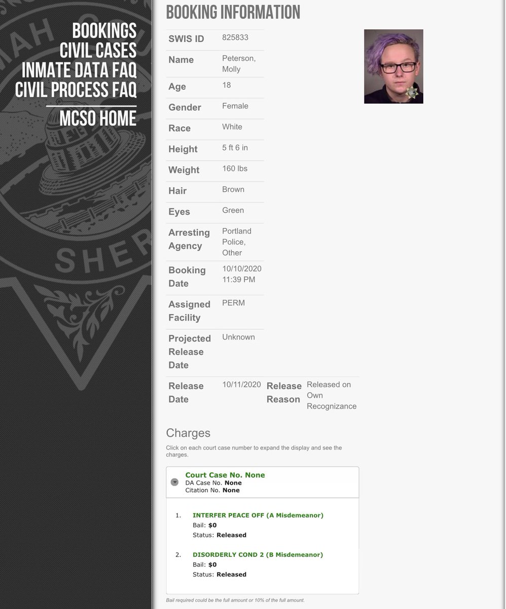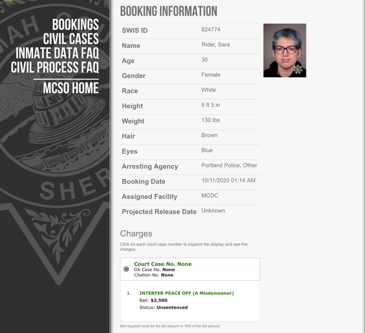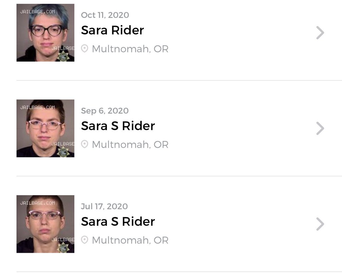 Sara Sigourney Rider, Antifa arrested in Portland last night