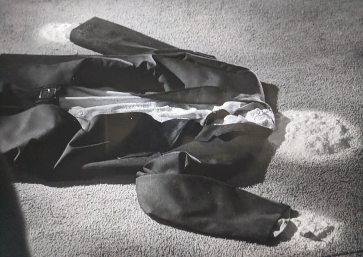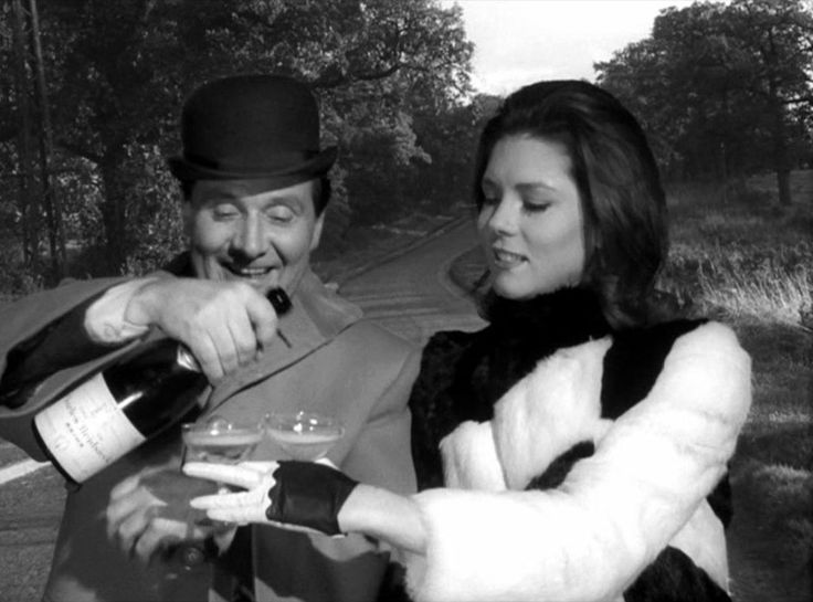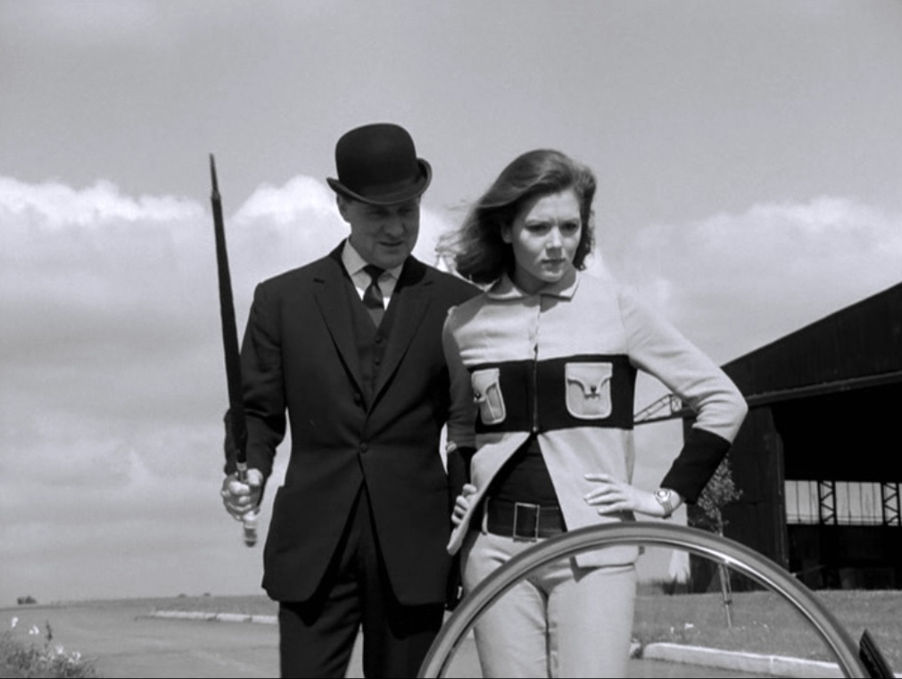 Fashion designer John Bates gets his first on-screen credit, having created this distinctive double-pocket outfit for Emma Peel, although viewers would never see it in its vivid pink reality.