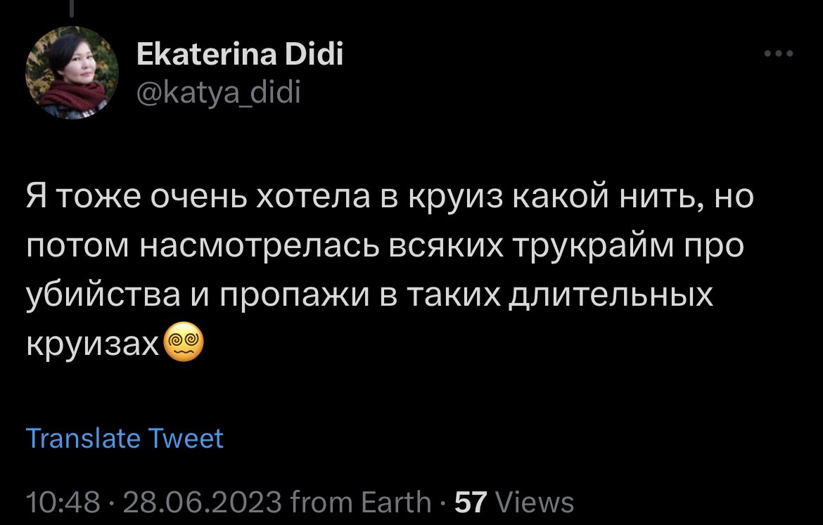 1. Никто в круизах не пропадает, уровень безопасности и охрана лучше чем в городе. Есть также мед персонал.