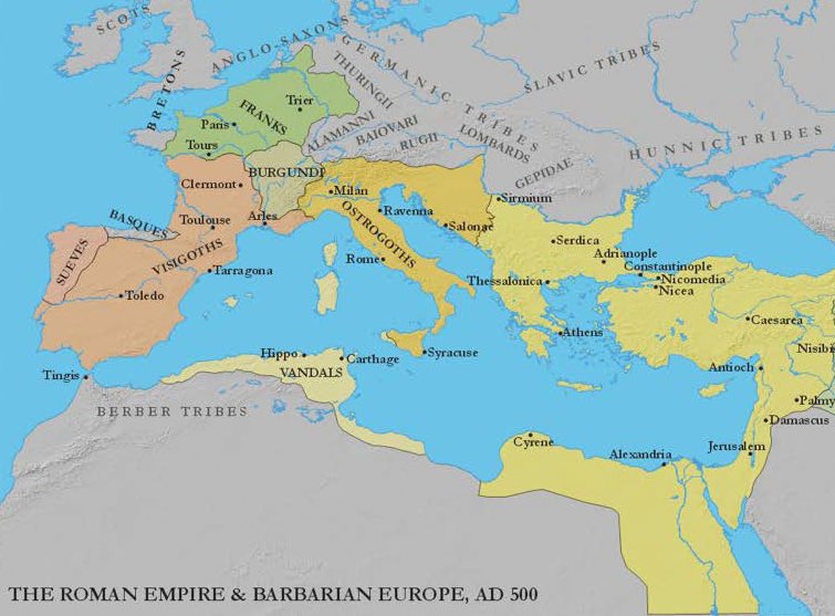The Franks would be a key player in medieval Europe, a defining moment was the battle of Vouille (507) where King Clovis pushed the Visigoths out of southern France!🧵