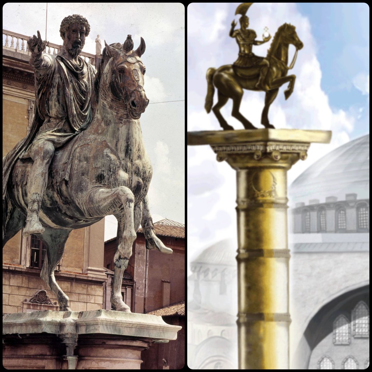 The equestrian statue of Marcus Aurelius in Rome is famous. However, the statue of Justinian in Constantinople dwarfed it!