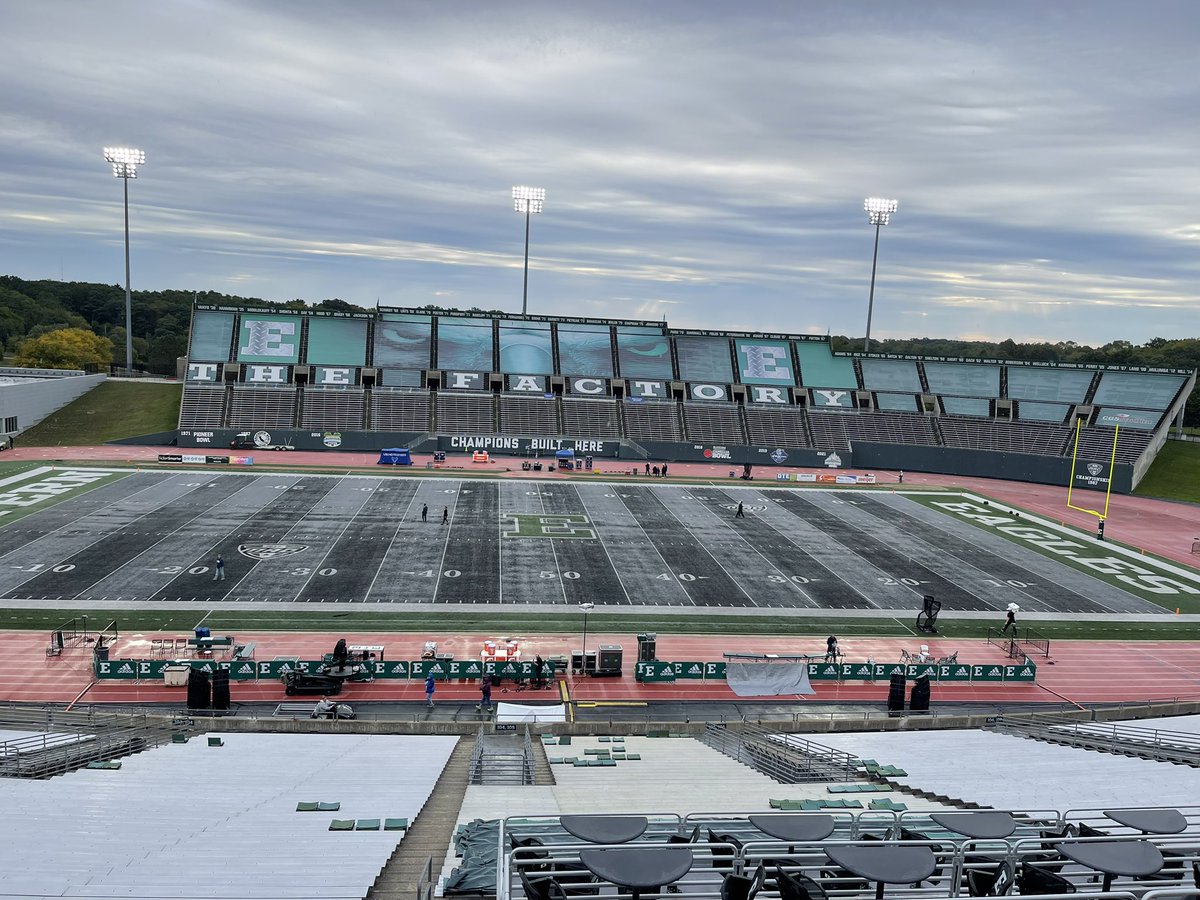 In other words, perfect day at THE FACTORY as @EMUFB hosts @UBFootball in the @MACSports opener on @CBSSportsNet at Noon et.