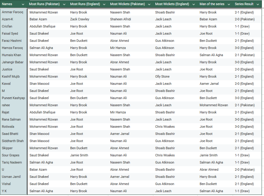 Here are #CricketUnplugged #Gupshup regular speakers predictions for Pakistan England Series. Charts with data summary follow within this thread (1/7)