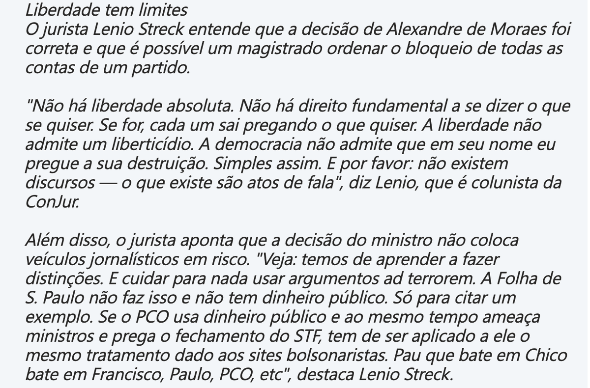 Será que esse cidadão nasceu depois do processo do mensalão, do golpe de 2016 e da fraude eleitoral de 2018. Não viu a Lava-Jato? Em todos esses momentos a "imprensa séria" atacou duramente os direitos democráticos e defendeu o seu cancelamento. 2/segue