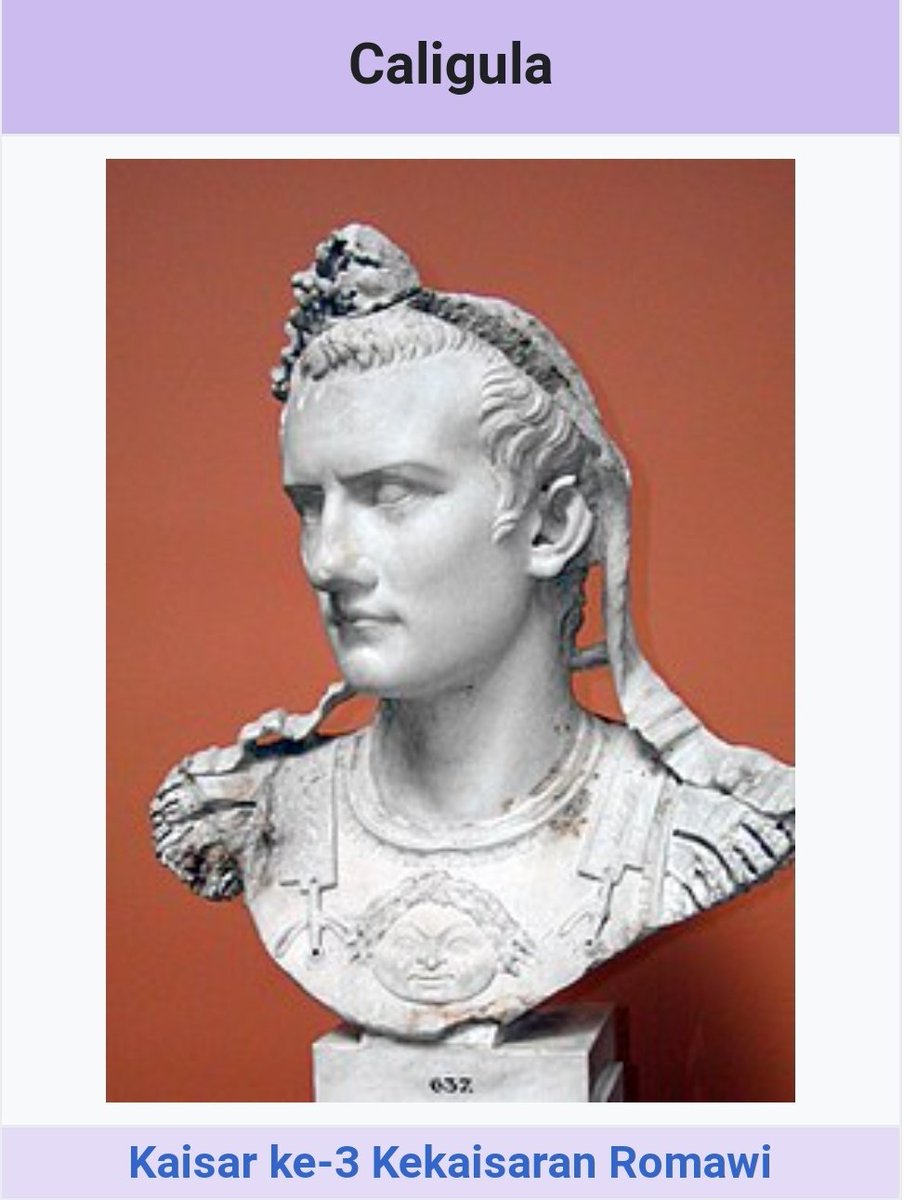 Caligula adl kaisar ke-3 Kekaisaran Romawi yg memerintah lumayan singkat : 4 th (37-42 M) menggantikan Kaisar Tiberius