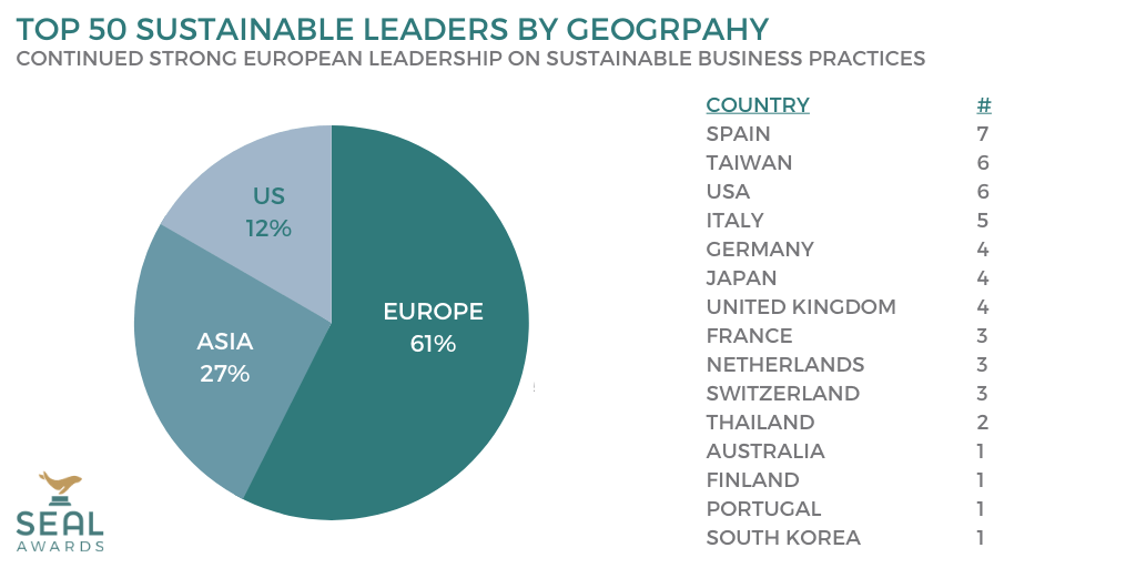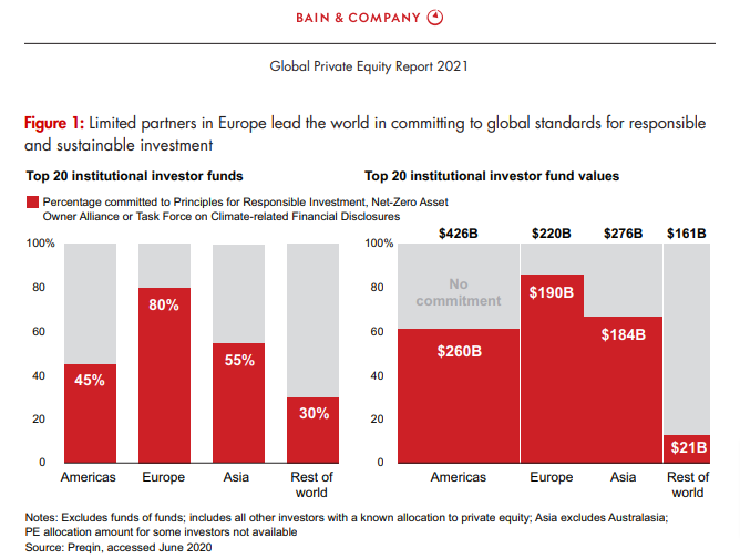 As an aside, strength of Europe and Asia in ESG PE is consistent with strong corporate ESG ratings in our own rankings: