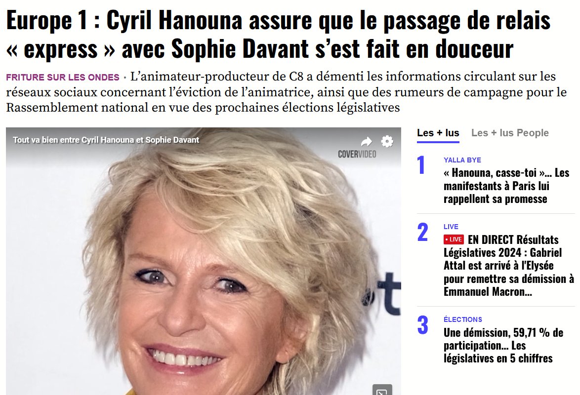 1/ Sophie Davant, éjectée de sa case d'@Europe1 au profit de Cyril Hanouna pour une émission temporaire avec l'objectif politique de favoriser l'union des droites et pour seuls invités aux 50 nuances de fachos, allant de la droite à l'extrême-droite !